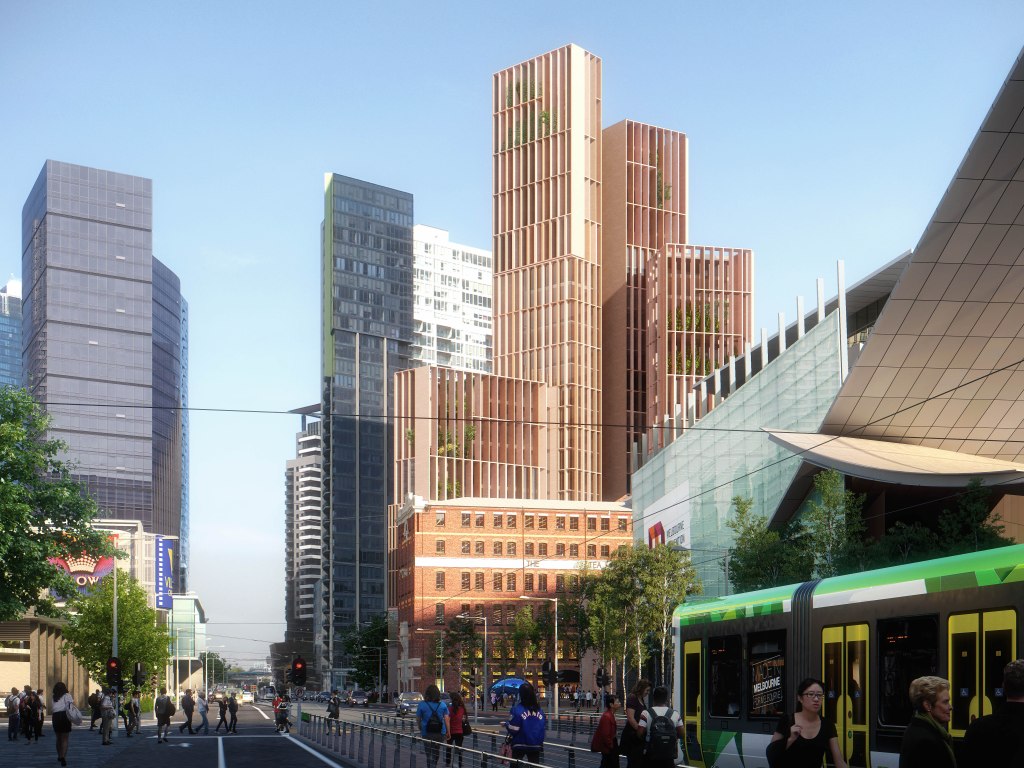 Mixed-use adaptive re-use and high rise project by Snøhetta in Melbourne, Australia.