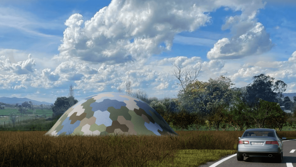The proposal is a mysterious mound on the outskirts of Whitfield that appears to be hiding something. Is it a large glera grape, ready to be unveiled as a new piece of public art celebrating King Valley’s Prosecco? Maybe the mystery is juicier than the knowing.