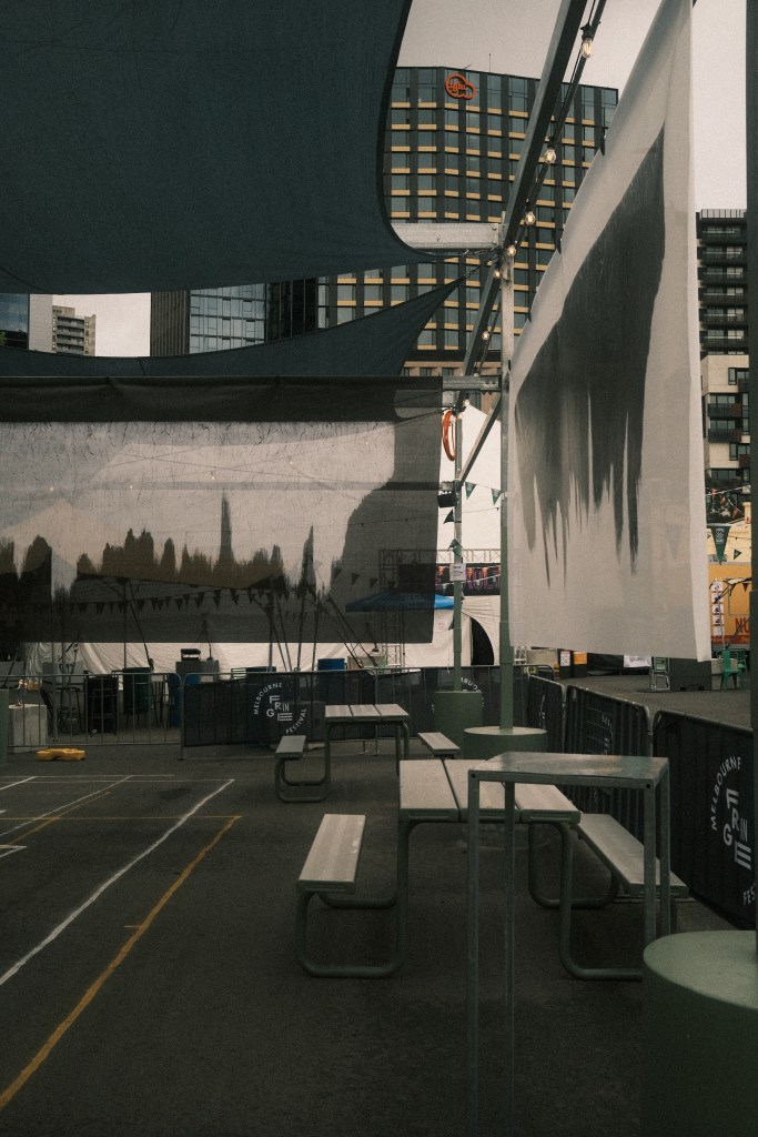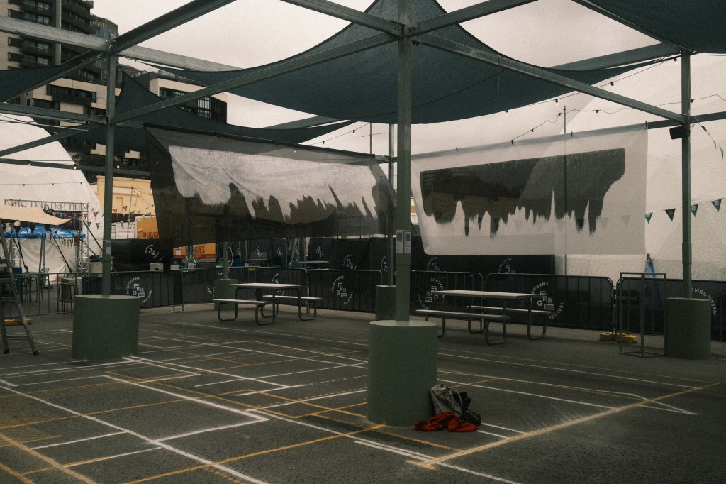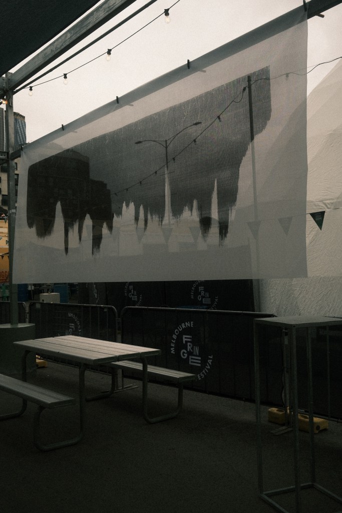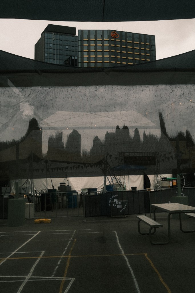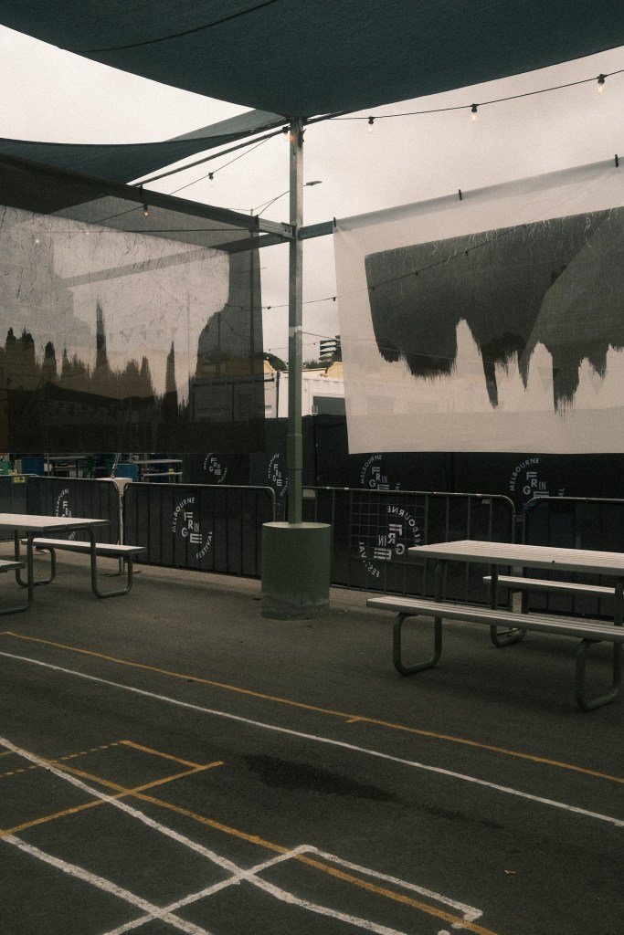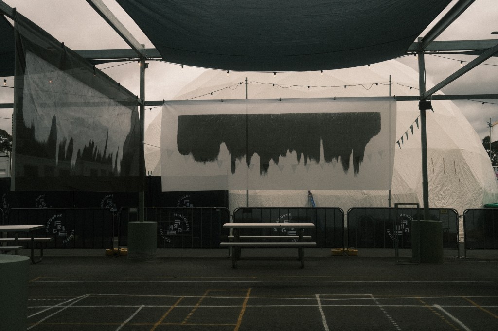 Skylines/Groundlines was a temporary public art installation at Melbourne’s Queen Victoria Market by EXCX for Public Art Park 2023, an initiative of Testing Grounds/The Projects. Digital graphic printed on mesh and video installation.