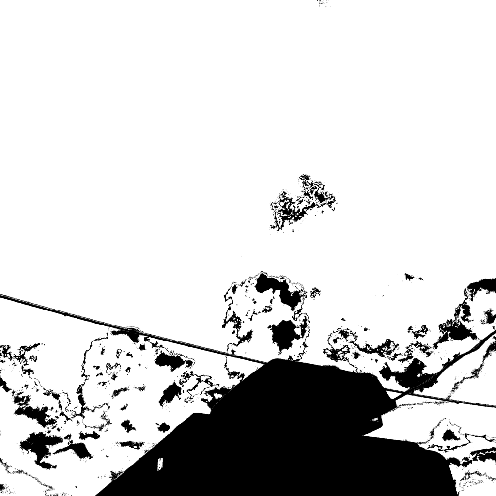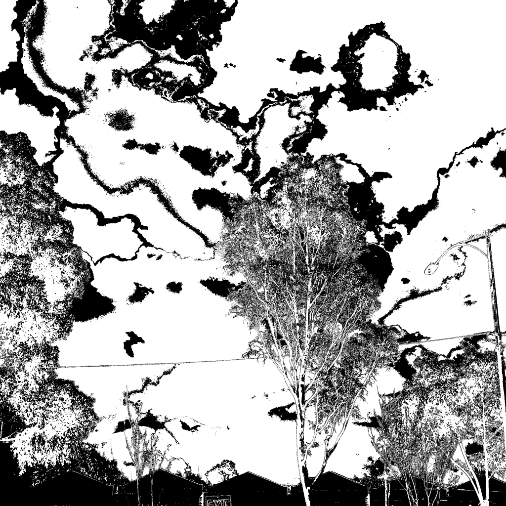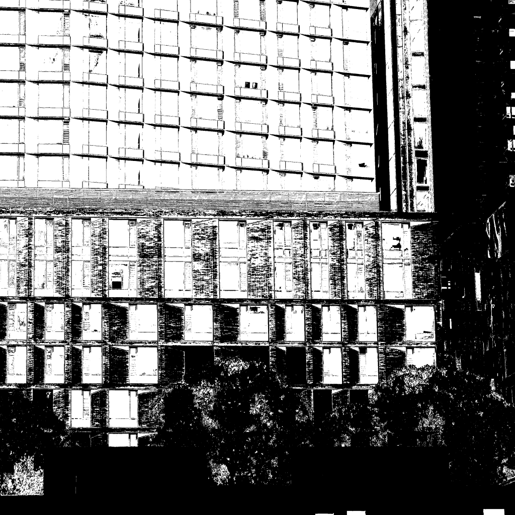 The slivers of brilliant light between the towers and the delving roots, cracks and drains of the asphalt surface create infinitely long edges of sky and earth cast not against one another but against the material of the city, which must mediate between the two irreconcilable perspectives.