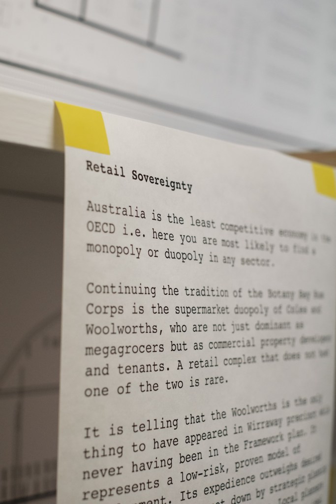 A case is built against each suspect using what is at hand: news clippings, site photography, tangential historical research, unhinged spreadsheets and speculative architectural drawings. Clues lead to suspicions lead to accusations that become propositions for what could happen next in Fishermans Bend if the economic logics and cultural myths at the heart of urban renewal are more clearly stated, instrumentalised and maximised.